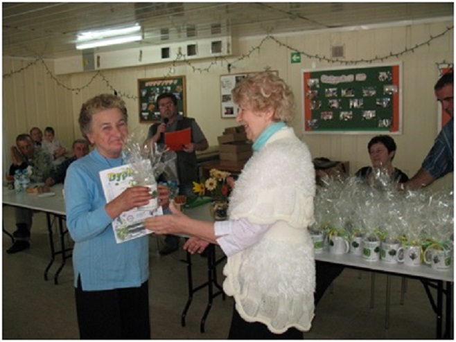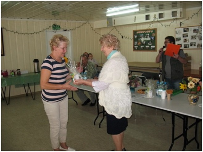 Pani Prezes wyróżnionych działkowców zaprosiła do odbioru nagród. Wręczanie wyróżniającym się działkowcom symbolicznych upominków.