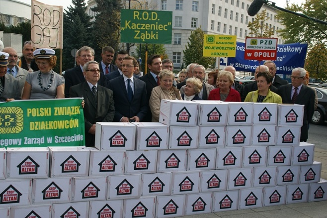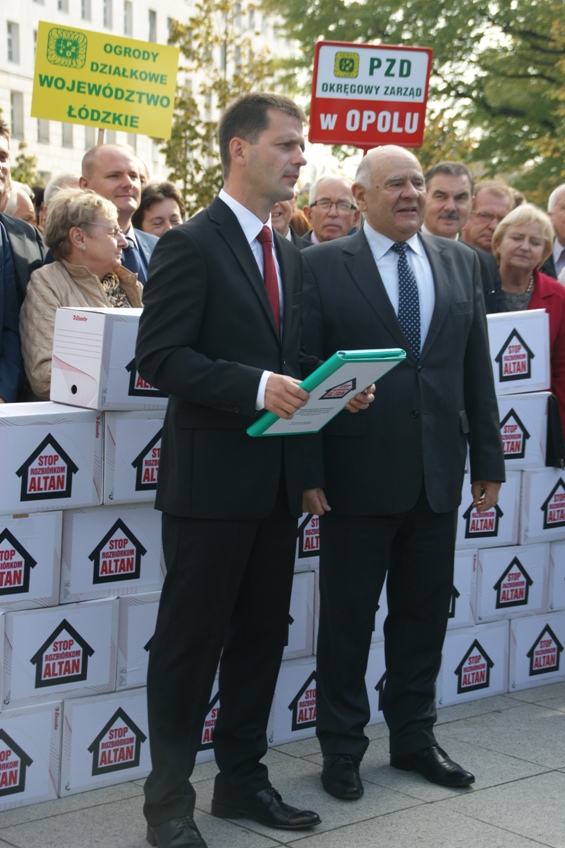 Pełnomocnik Komitetu przypomniał także, że działkowcy czekali sześć miesięcy po kontrowersyjnym wyroku NSA, mając nadzieję, że sprawą zajmie się jakiś podmiot władzy publicznej. Ponieważ się tak nie stało, PZD postanowił wziąć sprawy w swoje ręce. Szybko powołany został Komitet „STOP ROZBIÓRKOM ALTAN”, który rozpoczął akcję zbierania podpisów pod projektem. „100 000, które są wymagane do złożenia projektu w Sejmie, uzbieraliśmy bardzo szybko, jednak wiedząc, że im większym poparciem cieszy się jakaś inicjatywa w Sejmie, tym większe szanse na jej uchwalenie postanowiliśmy wykorzystać niemal cały czas, jaki daje im prawo, czyli blisko trzy miesiące. Dzięki temu dziś składamy 700 000 podpisów, mając nadzieję, że posłowie nie zlekceważą tak jednoznacznego poparcia obywateli” – dodawał Piech.