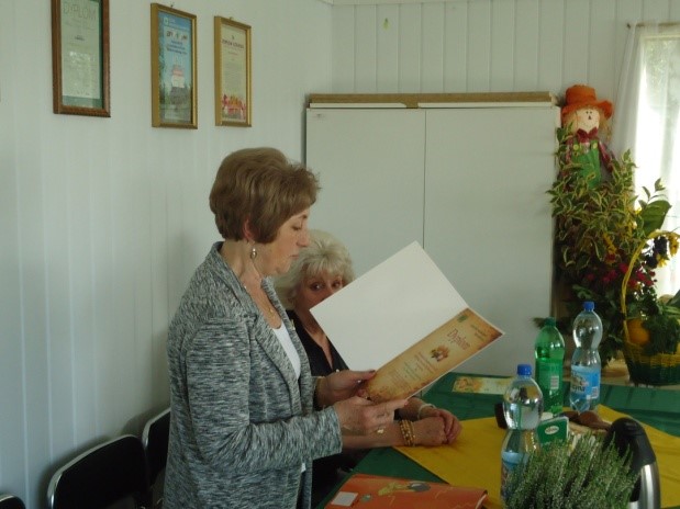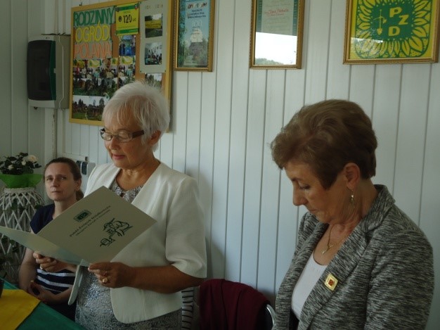 Prezes odczytała również dyplomy: jeden za udział w Krajowych Dniach Działkowca w Bytomiu oraz pracę dla PZD; drugi w podziękowaniu działkowcom za prezentację ogrodu „POLANA” podczas Okręgowych Dni Działkowca w Świnoujściu. Odczytała również artykuł Kuriera Szczecińskiego z dnia 12.09.17 r. z wywiadem i zdjęciem stoiska ogrodu.