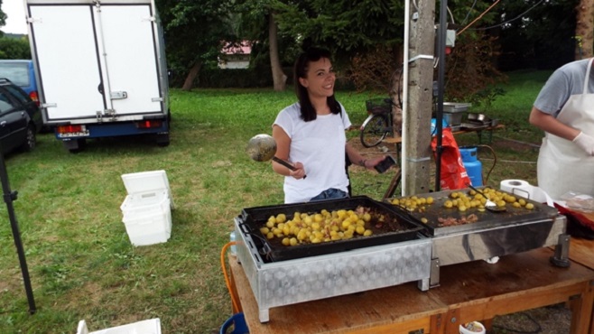 Po części oficjalnej rozpoczęto zabawę. Działkowcy częstowani byli gorącą grochówką , rewelacyjnie przyrządzanym grillem , pieczonymi bananami i ananasem.