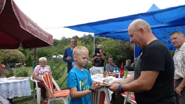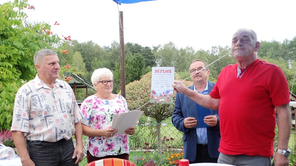 Zastępca prezesa Henryk Wojtania wręczył dyplomy uznania działkowcom, którzy wykazali się w pracach na rzecz ogrodu.