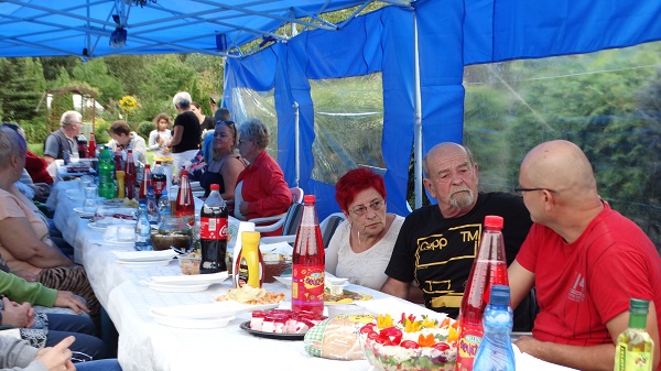 Niezawodni gryl-meni Adam i Radek zgłosili gotowość do podania kiełbasek i kaszanek. I w tym momencie spotkanie zmieniło się w biesiadę. Działkowcy wykazali się inicjatywą i syto zastawili stoły w smakołyki.