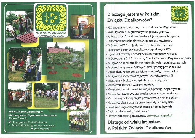 Tradycyjnie, jak co roku Polski Związek Działkowców jest jednym z patronów branżowych podczas MTP, a okręg poznański wystawiał swoje stoisko, przyciągające wzrok dużymi banerami i logo. Dostępne były ulotki zachęcające do wstąpienia do PZD i korzystania z jego dobrodziejstw.