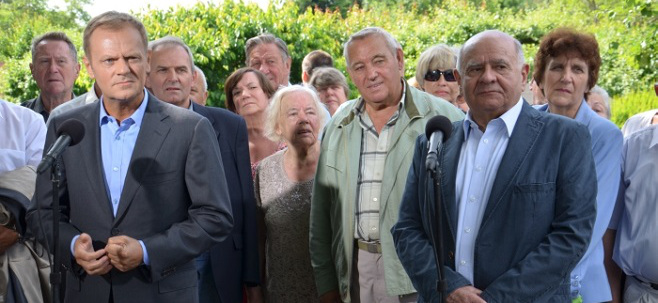 (fot. archiwalne, na zdjęciu Prezes Rady Ministrów D. Tusk oraz Prezes PZD Eugeniusz Kondracki podczas breifingu prasowego w ROD „Waszyngtona” w Warszawie, który odbył się 15 czerwca br.)