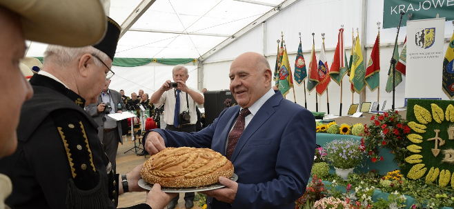 Po odśpiewaniu hymnu narodowego i hymnu działkowców „Zielona Rzeczpospolita” delegacja OZ Śląskiego PZD prowadzona przez Józefa Noskiego wręczyła Eugeniuszowi Kondrackiemu bochen dożynkowy.