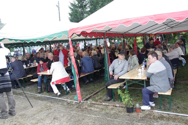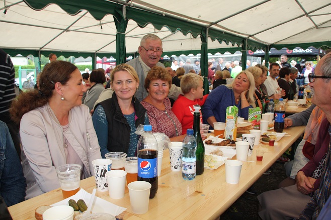 Działkowe towarzystwo rozpoczęło już biesiadowanie, rozlokowane pod namiotem. Gastronomia pracowała na pełnych obrotach. Pomimo już rozbawienia, kiedy głos zabrał E. Kondracki, gwar ucichł i z uwagą wysłuchano wystąpienia,  które na tę okoliczność było w sam raz. Były gratulacje, pochwały, trochę historii walki o ogrody, walki o prawo gwarantujące byt ogrodom, o umacnianie prawa do gruntu zajmowanego przez ogrody ale także o konsekwencjach wynikających z nieprzestrzegania prawa, o czym jak wspomniał Prezes Kondracki przy święcie nie powinno się mówić ale prawo przestrzegać trzeba, bo jego ignorancja szkodzi wszystkim, w całym Związku.
