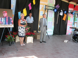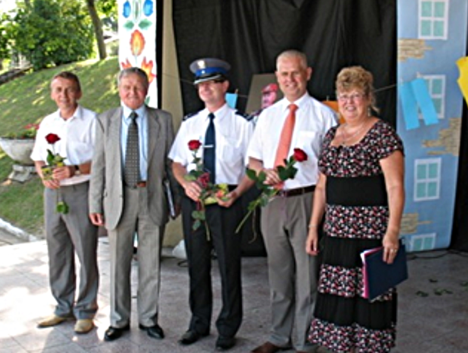 Po złożeniu specjalnego podziękowania przez Prezesa OZ PZD Tadeusza Jarzębaka – Burmistrzowi Ryszardowi SOLA, Vice Burmistrzowi, oraz Naczelnikowi Wydziału  Prewencji Policji Inspektorowi Andrzejowi Sarnowskiemu – wspólne zdjęcie z Panią Prezes ROD Teresą Smolich.