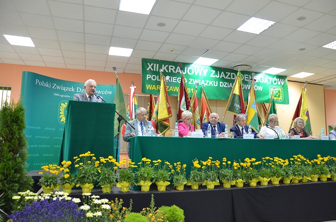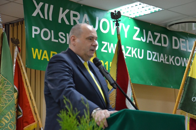Marszałek Województwa Mazowieckiego w serdecznych słowach pogratulował determinacji i wytrwałości oraz głębokiego przekonania, że zjednoczeni w Polskim Związku Działkowców działacze robią rzeczy dobre, godne i warte szacunku oraz, ze bronią ROD przez ostatnie 25 lat.  – Miasta to nie mogą być pustynie betonowe. Inteligentne miasta to miasta dobrostanu zdrowotnego, przyrodniczego, które służą ludziom i w których jest miejsce dla każdego. Powinniśmy żyć w czystym środowisku i oddychać czystym powietrzem. Miejsce dla ogrodów działkowych jest i zawsze będzie. Co więcej jest miejsce, by powstawały nowe ogrody działkowe – mówił podczas przemówienia do delegatów obecnych na XII Krajowym Zjeździe Delegatów. Jak zauważył Marszałek Województwa, obszar zielonej przestrzeni miejskiej musi być broniony. Jako członek Związku Województw RP obiecał, że będzie wspierał organizacje społeczne, w tym PZD, w dążeniu do wykorzystania środków unijne dla rozwoju ogrodnictwa działkowego. W swoim przemówieniu nie krył tego, że przestrzenie w miastach są cenne w sensie materialnym. – Dlatego ważne jest, by większość parlamentarzystów miała elementarną wiedze odnoście tego, jak ważna jest ta zieleń w miastach i jaką rolę pełnią ROD. Życzę Wam byście mieli zrozumienie parlamentarzystów dla ważnych dla was spraw. Dziękuję za wspólną pozytywną zmianę województw – mówił Marszałek Województwa Adam Struzik.