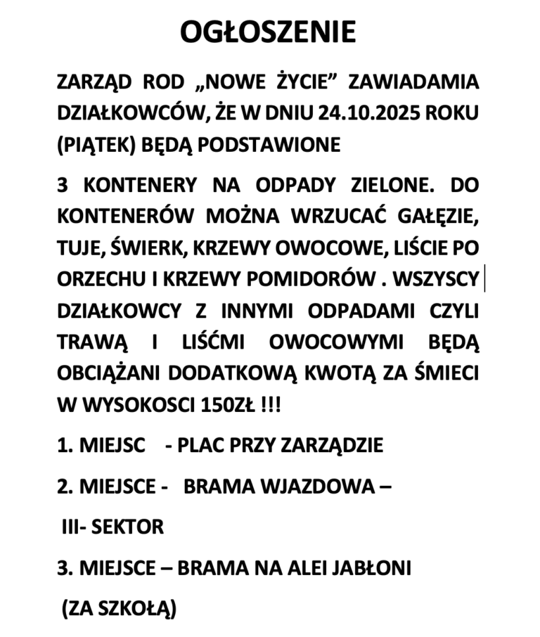 Wszystkie opłaty można wpłacać na konto bankowe ROD im. „Nowe Życie” ul. Hoża 29, 71-699 Szczecin