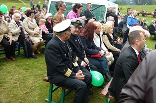 Burmistrz Wolina – Eugeniusz Jasiewicz, jako współgospodarz uroczystości, witając gości, nie omieszkał wyraźnie i przyjaźnie powitać wolińskich działkowców.