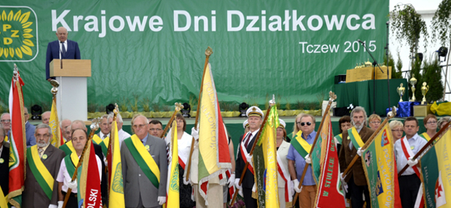 Uroczystego otwarcia dokonał prezes PZD Eugeniusz Kondracki, który w pierwszych słowach serdecznie powitał wszystkich uczestników oraz przybyłych gości. Prezes PZD, a także zebrani goście gorącymi brawami powitali premier Ewę Kopacz. – Wszyscy wiemy, jak wiele znaczy Pani sympatia dla ogrodów działkowych i obecność na najważniejszym dla nas święcie – mówił Prezes Eugeniusz Kondracki. W sposób szczególny powitał też gospodarza miasta prezydenta Tczewa Mirosława Pobłockiego- przyjaciela działkowców, który otworzył bramy Tczewa nie tylko na istnienie i tworzenie ROD, ale też na wspólne świętowanie Krajowych Dni Działkowca przez działkowców i mieszkańców Tczewa wraz z przybyłymi na tę imprezę gośćmi.